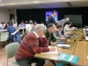 | 13回目 | 10月 4日 | 色々と行事の多い10月 予想に反して今迄で一番多い53名の参加者が有りました。 クーラーがほしいくらいの暑さに少々ばて気味に・・・ 前半は(花札遊び)インターネットの無料ゲームの使い方 昔取った杵柄?だとす〜す〜とゲームに入っていける方 花札なんてはじめてと悪戦苦闘してる方とそれぞれに・・・ 後半はいつもの様に エクセル・ワード・デジカメ の復習 |