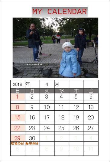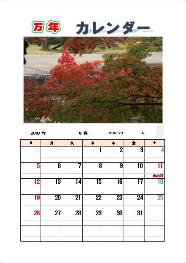 2018年のカレンダー作成