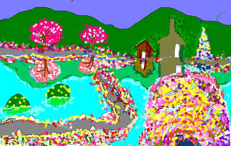 ペイントでEなばなの里の水面に映る桜の花、Fカレンダー作成と多種多様でした