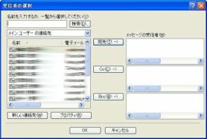 (複数の人に送る場合は続けて送りたい人をダブルクリックすると同じように「宛先」の欄に名前やアドレスが入ります。
