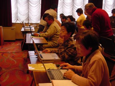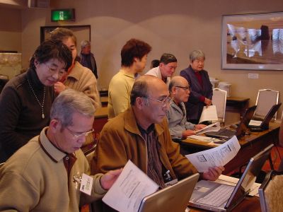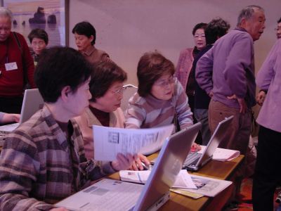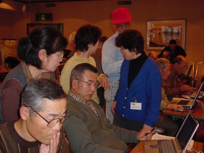 2期生の授業風景 一生懸命 頑張ってる足跡、懐かしいですね。 皆さん、色々と思い出もおありでしょう 私達1期生有志も、アシスタントとしては少々役不足でしたが、2期生の皆様方と、 共に勉強させて頂きました 最終回の作品発表もそれぞれ皆さん頑張った結果が出ていましたね。 お仲間も出来たことでしょうし、ここで学んだパソコンを個々の生活の中で大いに役立てて下さいね。 また、みんなでお会いしましょう。 (1期生有志)