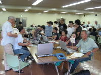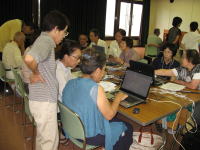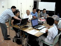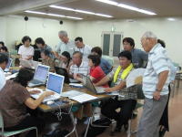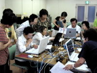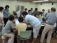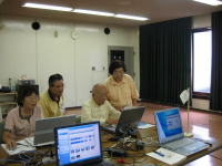 | ※エクセル班 「エクセルで名簿を作ろう!!」 サンプルを手本に名簿作りに挑戦です 解説が付いているのだが・・・ 「う〜ん」 なかなか思うようには進まないな〜 OBさんお願いしま〜す OBさんも後ろで一緒に勉強中で〜す |