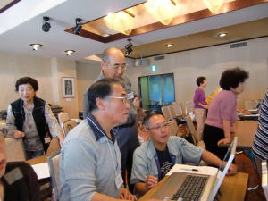 ![]() いつもながらの熱血指導、思わず笑みがこぼれます 解りやすいマンツーマンの指導で 住所録が仕上がっていきました |