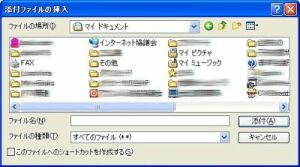 「メッセージの作成」の画面にはクリップの絵の書いた「添付」ボタンがあります。これをクリックするとマイドキュメントなどのファイルが開いて何を添付するか聞いてきますので、添付する文書や写真をクリックして選んで下さい。あとは右下の「添付」ボタンをクリックすると現在作成中の文書に添付されます。